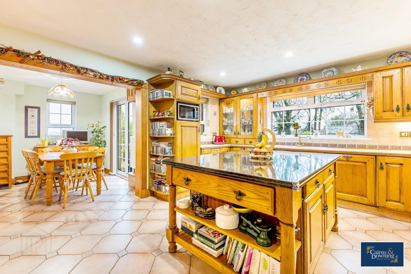 • Large bright and spacious solid oak kitchen with central island & dining space