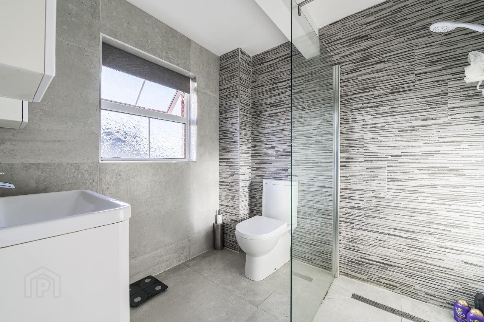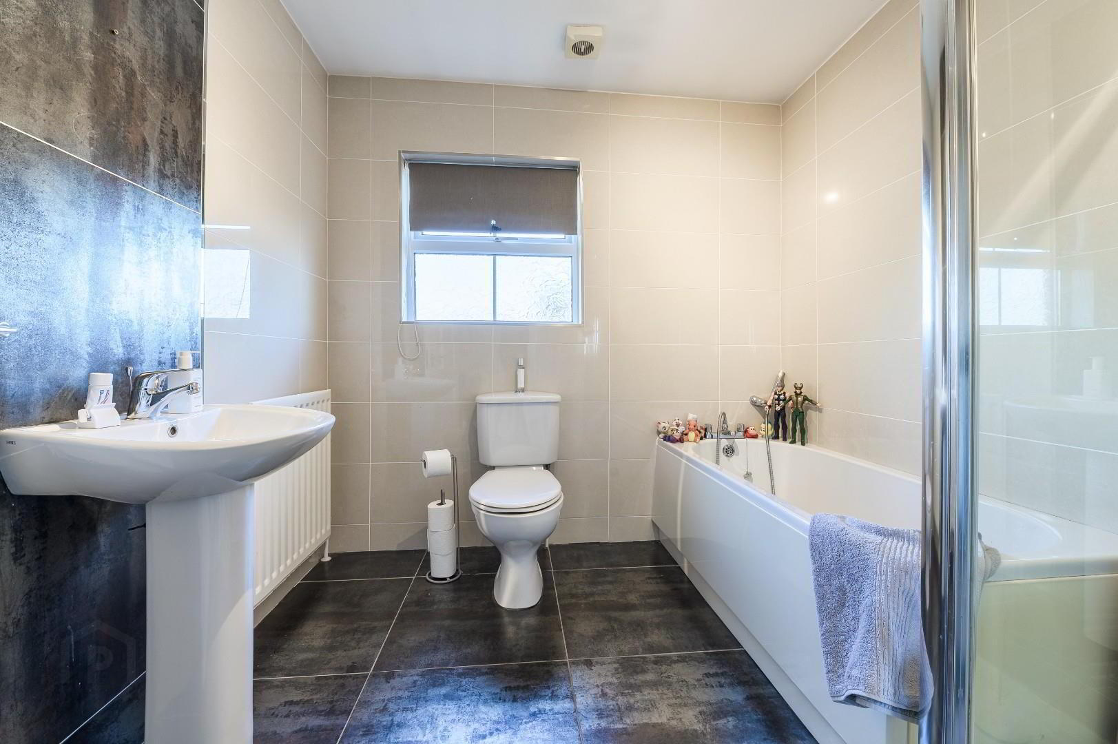 - Good size modern family bathroom with separate bath and shower unit, wash hand basin & toilet. Tiled flooring and walls. Window to the rear