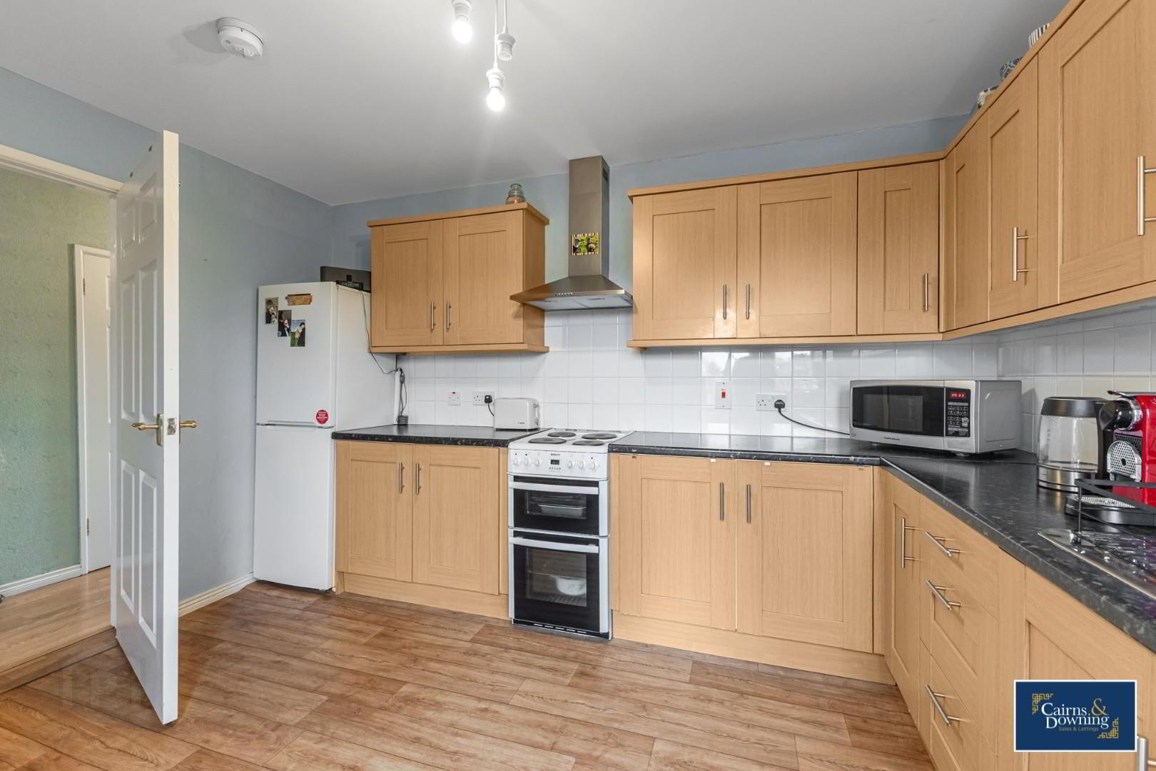 - A good size kitchen and dining space with a range of high and low level units. A door leads out to the rear yard.