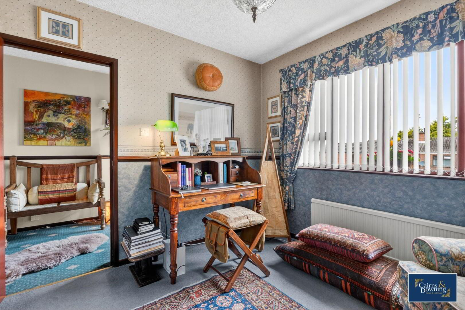 - Bay fronted window, fireplace with electric fire & carpet floor
