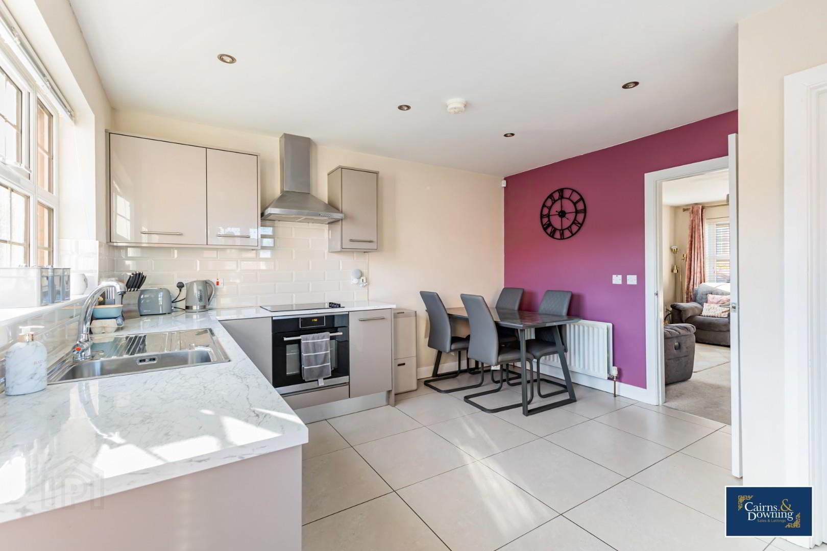 The heart of the home is a cozy family living room, featuring a charming log burning stove that creates a warm and inviting atmosphere, perfect for relaxing evenings. Adjacent to this, the bright and modern kitchen and dining area provide ample space for family meals and entertaining guests, making it a delightful hub for daily life.