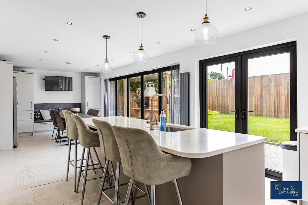 Upon entering, you are greeted by two spacious reception rooms, perfect for entertaining guests or enjoying quiet family evenings. The heart of the home is undoubtedly the beautiful, light-filled kitchen dining space, which features bi-folding doors that seamlessly connect the indoors with the expansive garden. This outdoor area is ideal for summer gatherings, complete with a designated BBQ space for those delightful al fresco dining experiences.