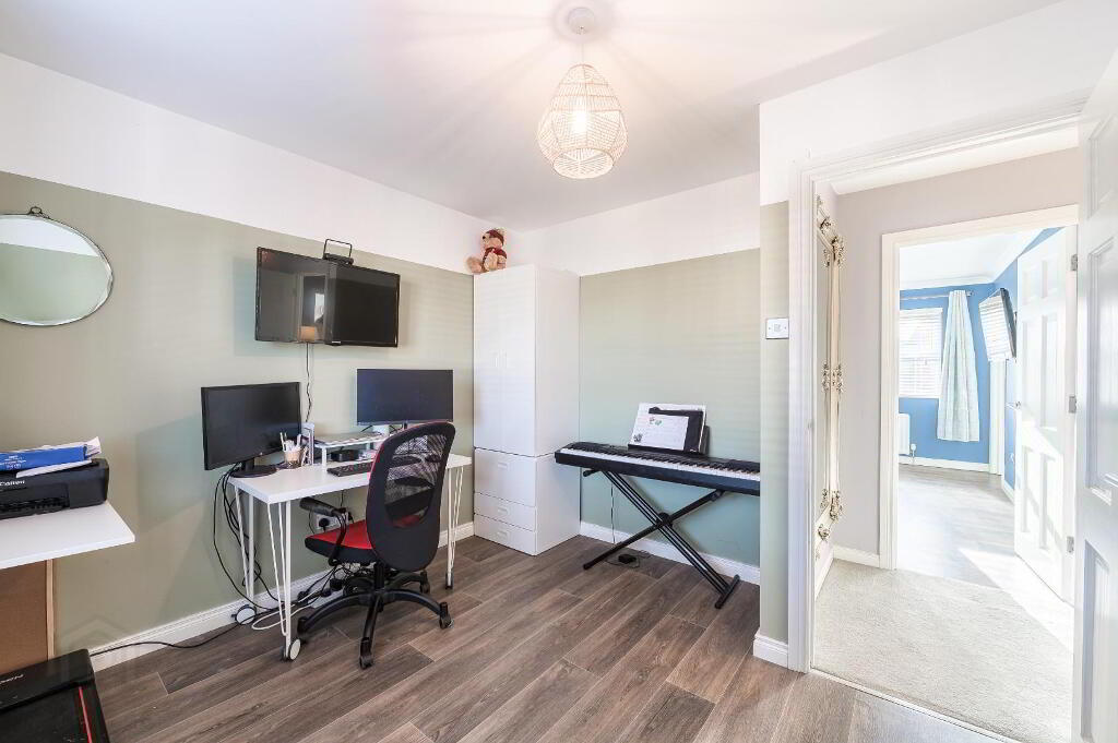 Smallest of the 4 bedrooms but still an ample size for a double bed. Single window to the rear. Wood effect flooring.
