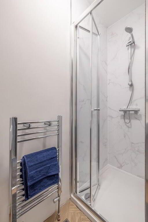 Kitchen fitted with hob, oven, dishwasher, washing and drying facilities as well as a breakfast bar and bar stools High quality shower rooms All warmed by a gas central heating system